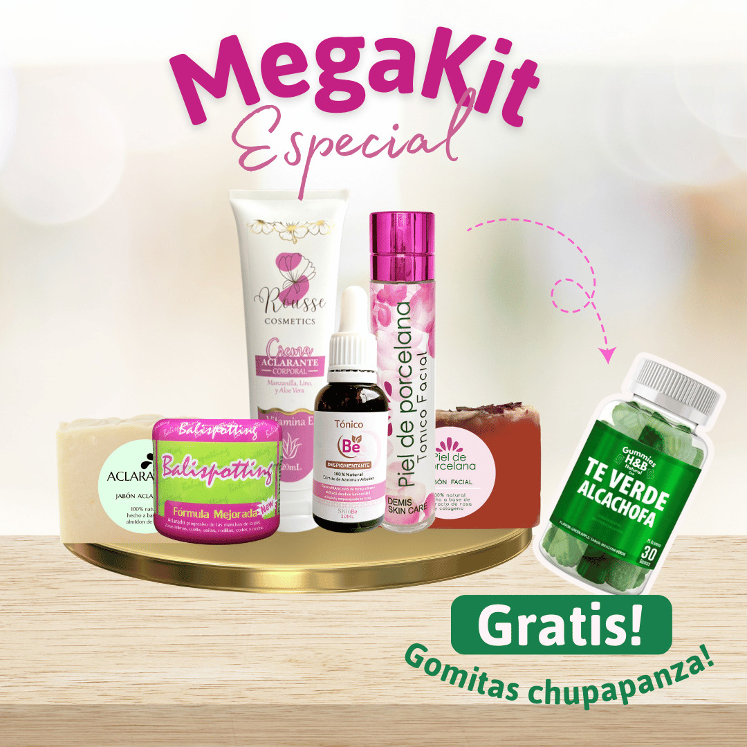 Con Este Mega kit eliminas Todo tipo de manchas, melasma, textura opaca y resequedad en cualquier zona, ademas de tratar los poros abiertos.